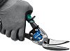 - Уникальная система, которая позволяет одной рукой как зафиксировать ножницы (при нажатии до щелчка), так и разблокировать их - простым сжатием рукояток, без необходимости искать рычажок.