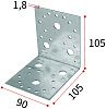 Уголок крепежный 90х105х105х1,8 мм KU, оцинкованная сталь