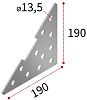 Прочная соединительная треугольная пластина предназначена для соединений элементов конструкций траверс, рамных и стеллажных систем. Cоединительная пластина обеспечивает усиление несущих конструкций для лёгких, средних и тяжелых систем. Используется в качестве: угла, крестового соединения, соединительного элемента бокового раскрепления для угловой консоли.