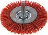 Рабочая поверхность изготовлена из нейлоновой щетины с вкраплениями абразивного зерна (оксида алюминия, Al₂O₃). Такое сочетание обеспечивает безопасность для основы. Нейлон не царапает и не повреждает основной металл в отличие от металлических щеток. Абразивные зерна эффективно удаляют ржавчину, окалину, стойкие загрязнения и старую краску.
