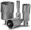 Корончатые сверла с твердосплавными лезвиями из карбида вольфрама — это универсальное средство обработки деталей из алюминия, конструкционной стали и жаропрочных сплавов (сплавов с очень высокой долей алюминия, титана и никеля, в частности инконеля, хастеллоя и нержавеющей стали), а также железнодорожных рельс. Применяется такой инструмент, как правило, на металлообрабатывающих производствах и при монтаже силовых металлоконструкций.