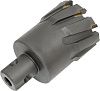 Корончатое сверло Messer с твердосплавными пластинами TCT предназначено для высверливания сквозных отверстий большого диаметра в легированной стали. Используется совместно с магнитными сверильными станками благодаря универсальному хвостовику Оne-Touch. Просверливает окружность по внешнему краю, что обеспечивает меньшую зону трения и более высокую производительность по сравнению со спиральными сверлами. Рекомендуется использование СОЖ (смазочно-охлаждающих жидкостей) и удаление стружки из зоны резания для сохранения максимального ресурса.